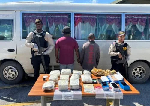 A LA CHIROLA: DETIENEN CHOFER Y COBRADOR DE AUTOBÚS CON ONCE PAQUETES DE PRESUNTA MARIHUANA