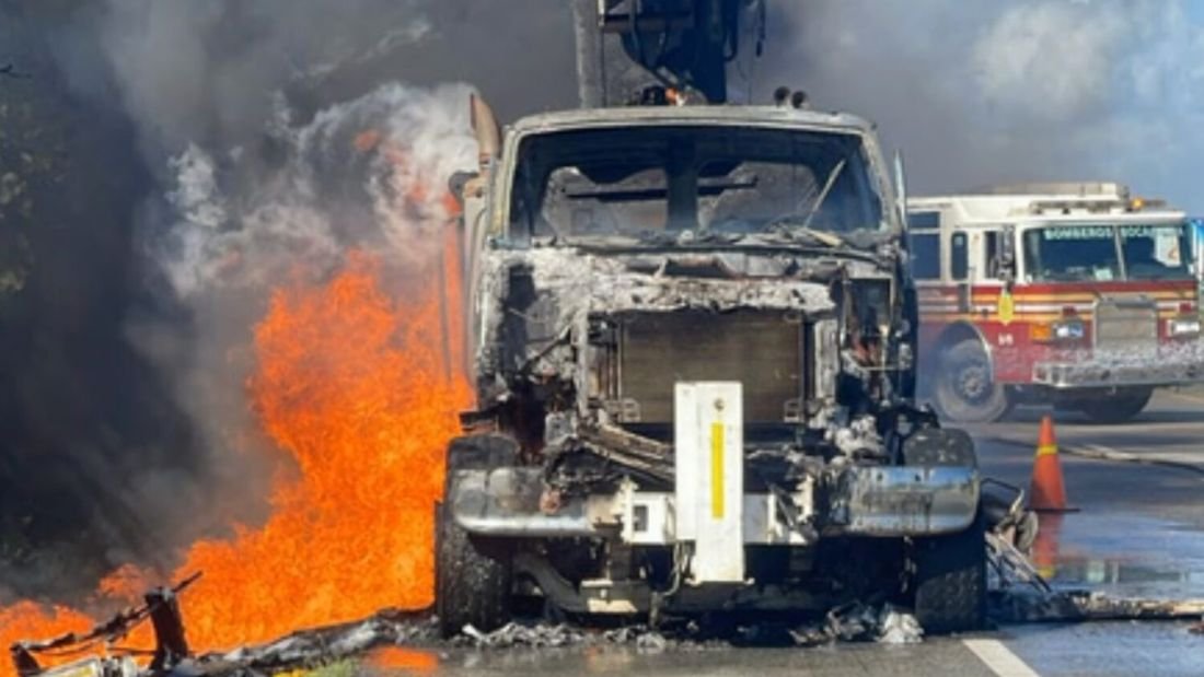 Camión grúa de EDEESTE queda envuelto en llamas en la Autovía del Este