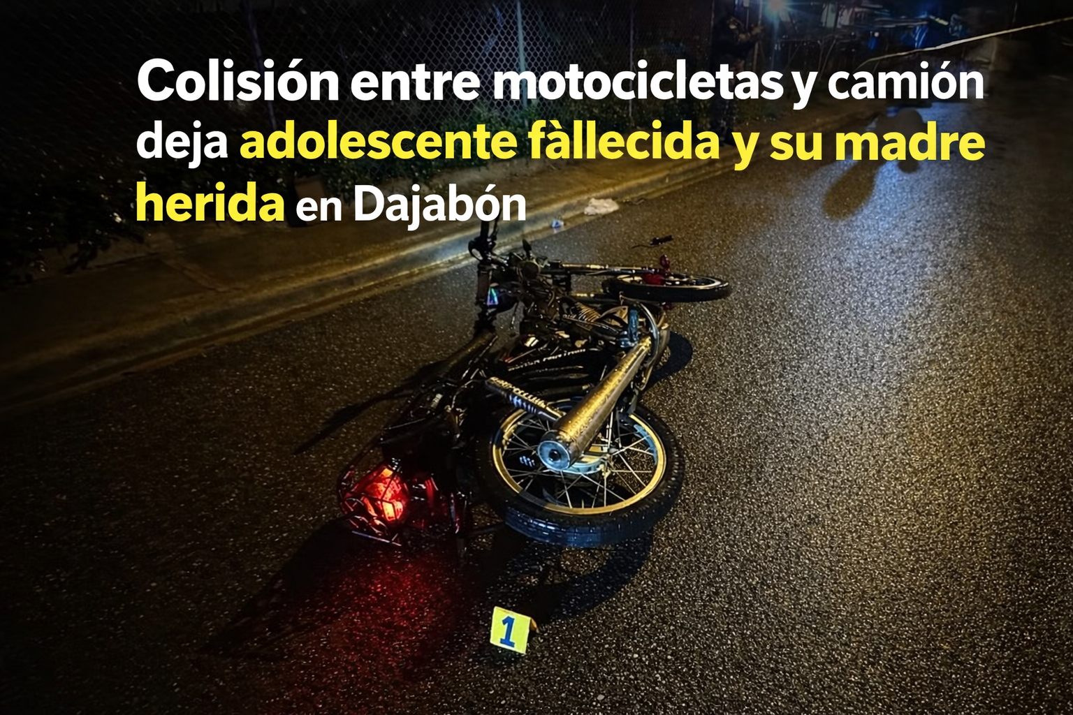Choque entre motocicletas y camión deja adolescente de 14 años muerta y una mujer herida en Dajabón