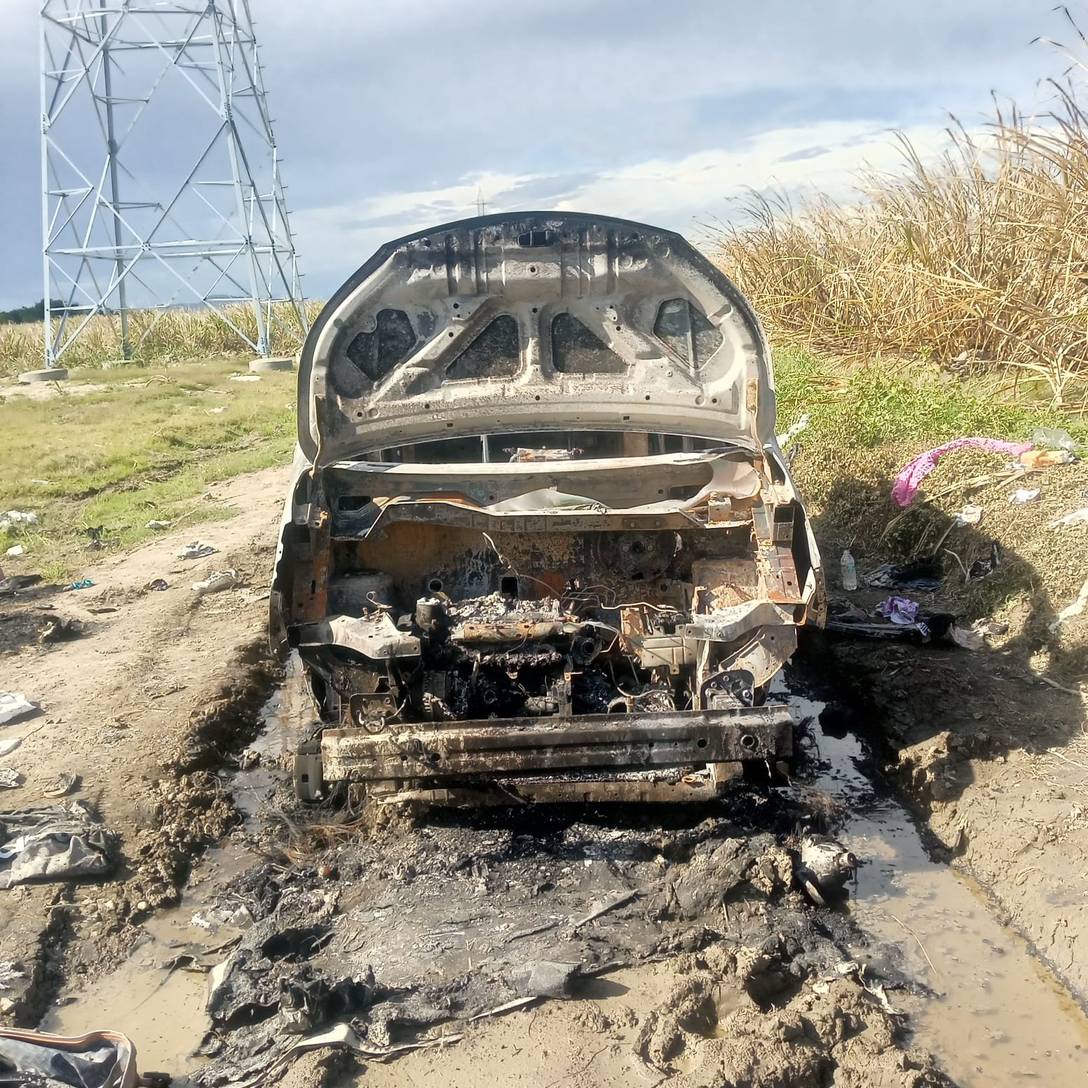 El vehículo incendiado, así como una yipeta CR-V color verde, marca Amarok, en la que supuestamente se desplazaban los atacantes, permanecen en el parqueo de la Dirección Regional Sur de la Policía Nacional como parte de las evidencias del caso.