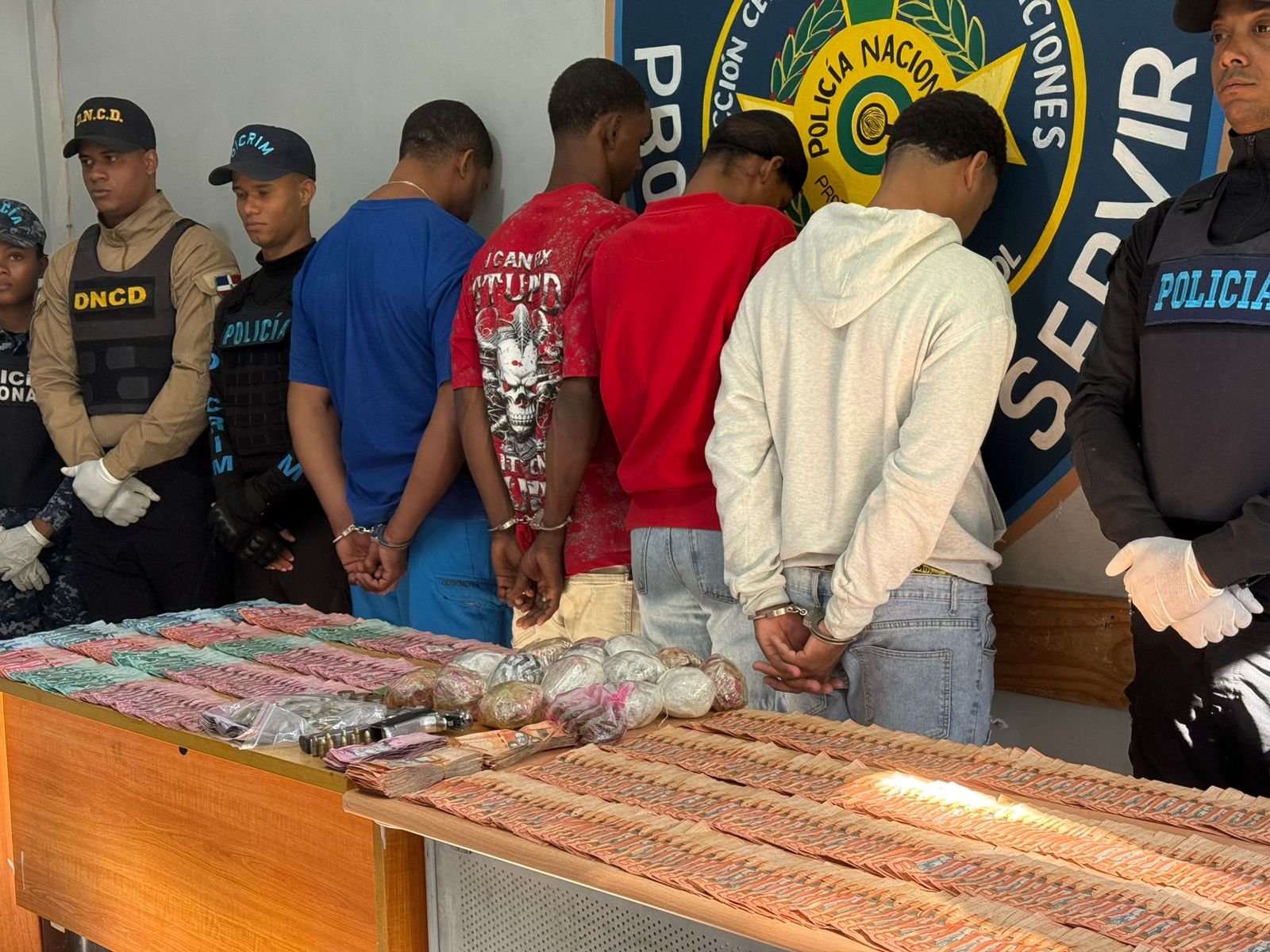 Durante las intervenciones fueron detenidos Antony Junior Pinales, Luis Féliz, Juan Pablo Féliz y Jonathan Enríquez Castillo. En las requisas se ocupó una pistola calibre 9mm con nueve cápsulas, mas de 165,000 pesos en efectivo y 16 porciones de presuntas sustancias narcóticas con un peso aproximado de 1,334 gramos, las cuales serán analizadas por el INACIF.
