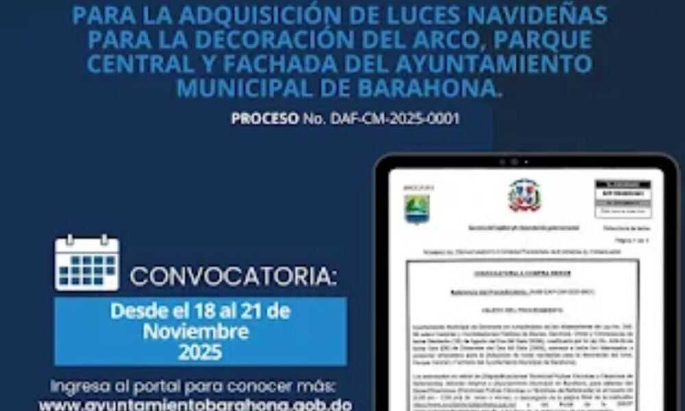 El ayuntamiento busca embellecer espacios emblemáticos durante la temporada festiva BARAHONA.– La Alcaldía municipal anunció la apertura del proceso de compra menor para la adquisición de...