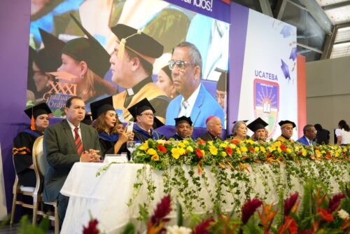 El acto inició con la invocación a Dios y las palabras de exhortación a cargo de monseñor Andrés Napoleón Romero Cárdenas, obispo de la Diócesis de Barahona y gran canciller de la UCATEBA, quien destacó el valor de la educación superior como instrumento de transformación humana y social, al tiempo que animó a los nuevos egresados a ejercer sus profesiones con responsabilidad, ética y espíritu de servicio.
