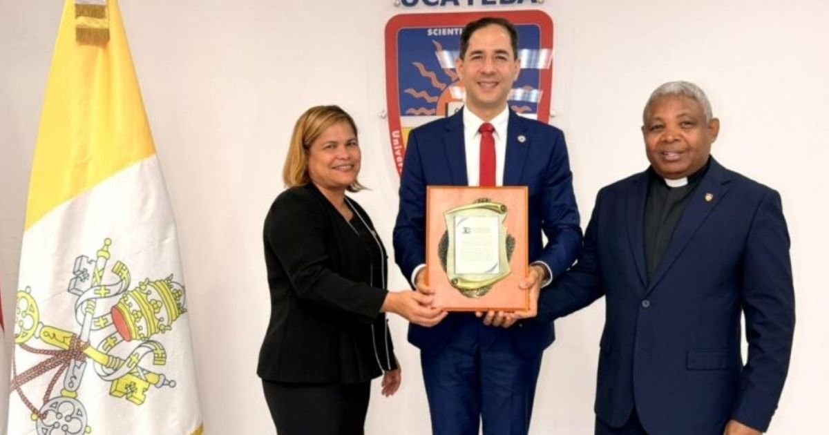 La distinción fue entregada por el rector de la UCATEBA, reverendo padre Marco Antonio Pérez Pérez, y recibida por el licenciado Eduardo Ortiz Díaz, encargado de Cultura del MESCYT, en representación del ministro Franklin García Fermín.